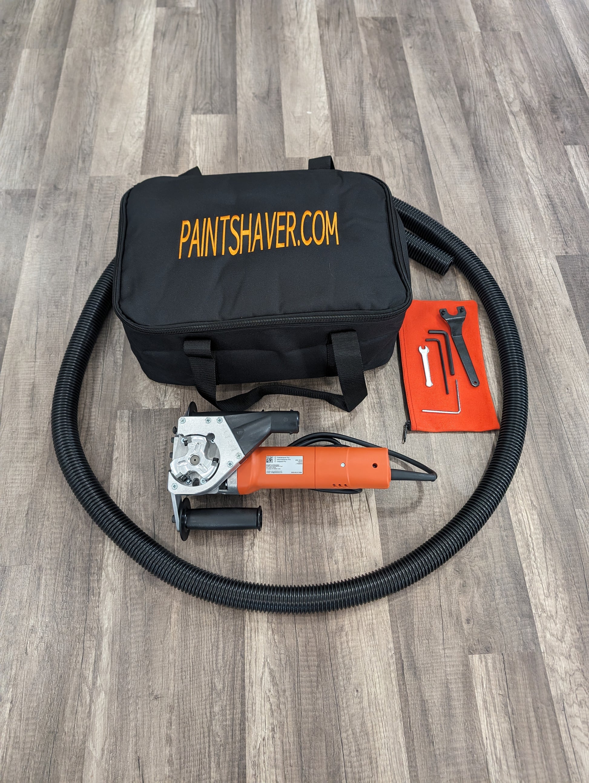 Includes: 240 Volt Paintshaver Pro, Nylon tool bag and 10 feet of 1.25" ID vacuum hose, instructions and adjusting tools. (vacuum sold separately)